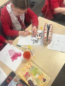 This week, we were inspired by the work of Sarah Kwan who creates art designs that includes multiculturalism. She blends Scottish cultures with other cultures around the world through her designs.