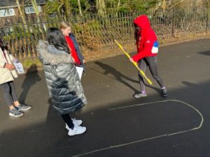 Thursday – We had woodland we made outfits out of sticks and stones, leafs. We also did some P.E out in the MUGA and we started by playing a game then we went onto dodgeball and it was really fun. We also had writing and we had to write a persuasive letter on our favourite tv show, movie, book or sport.