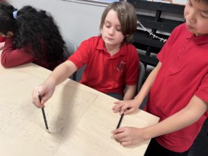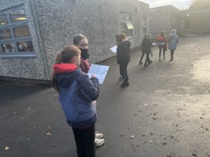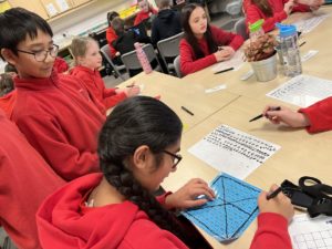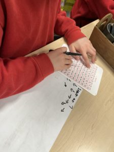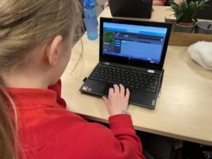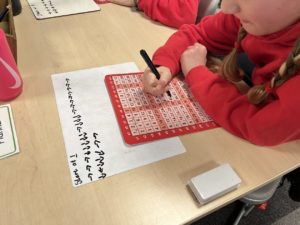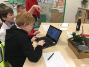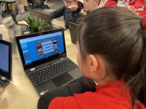Coding – the class split into 3 groups. The first  group was designing our own coding games with partners. The second group played coding games on the chromebooks. The third group played with 100 squares. Next we took it into the playground to code a path around the school for our friends to follow.