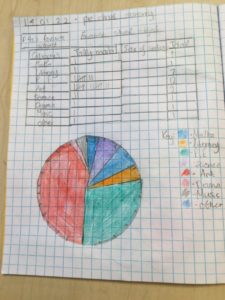 Numeracy- In numeracy our whole class have been looking at pie charts. We went round to different classes and asked them what they proffered out of lots of options like what your favourite colour is. We then made it into a pie chart.