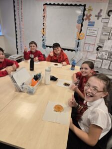 It has been exciting start to the year with the children utilising their new Meta Skills of leading, feeling, adapting and initiative in their sustainability design clothing challenge. First we explored the methods of paying for items in today’s society and then the children drew diagrams of the different stages in the manufacturing process. Equipped with this knowledge the pupils then formed teams and collaborated excellently to combine a variety of fabrics to produce a unique piece of clothing. To help them with this they created mood boards by using inspiration from their online research which included listing some fabric samples, drawing a logo, noting the colours they will use and deciding on a company name and slogan. The teams also applied their understanding of persuasion when writing engaging scripts about their items which they shared at the Crookfur’s P7 fashion showcase. The groups confidently modelled their creative designs to everyone in P7 and their presentation skills were very entertaining!