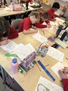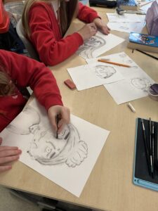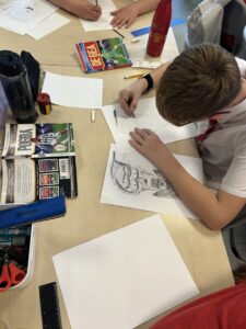P7 have been focusing on an artist study on Tim Burton. We looked at a range of his art work and sketched some different features we liked. We then took these ideas to create our own portraits with charcoal and chalk. 🕷️