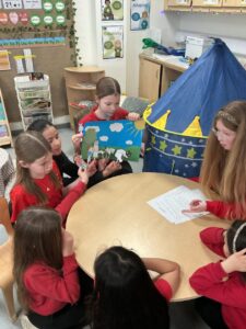 Today we visited P2 to tell our stories we have been working on. The stories all had morals and linked to our learning journey. Some groups made puppet shows and others made pop up books.
