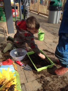 The children in the green group have really enjoyed taking part in some planting outdoors. We have spoken about how a tiny seed can grow into a beautiful flower or plant, if it is given the correct love and care. The children have been learning about the importance of watering our seeds in order to keep them alive.