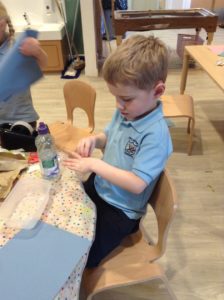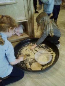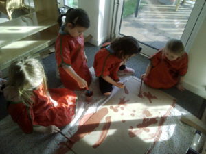 The children sparked an interest in the Goldilocks and the Three Bears story, which we then re-created in our home corner of the Nursery. They helped to paint and make the three different sized beds and then had lots of fun taking part in imaginative play, pretending to be different bears from the story. We also had porridge in the tuff tray so the children could explore different weight and measure with the different sized bowls and spoons.