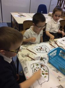 As part of our numeracy and maths we have been leaning about pattern and symmetry. For our Wednesday outdoor learning this week, we visited the woods to see what patterns we could create outdoors!