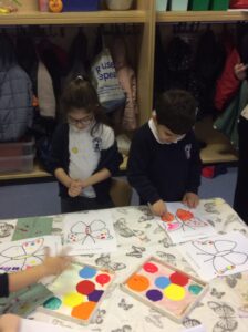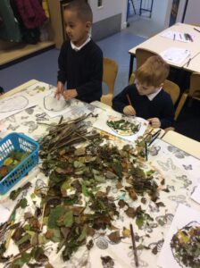 We collected lots of natural Β items from the woods to make our patterns and enjoyed experimenting with different creations!