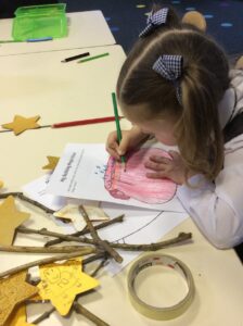 We even had a go at creating some symmetrical pictures using sticks, leaves, rocks and pinecones.
