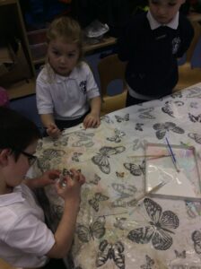 We took our survey sheets out with us to see what we could find. We then used tally marks to collect our data. We totalled up our findings and shared our results with each other!