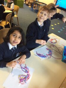 We made some McCoos using lots of different colours and textures of wools inspired by the Scottish artist Steven Brown.