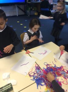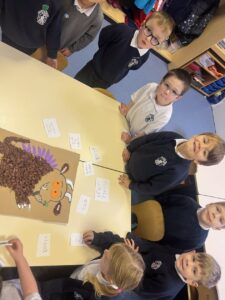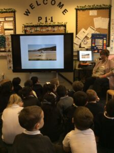 We had some lovely learning experiences over the two weeks including a special visit from Mrs Nobles mum who told us all about life on the island of Barra. We had a go at a traditional Gaelic waulking song and tried it out with some material with 1.2!
