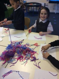 We made some McCoos using lots of different colours and textures of wools inspired by the Scottish artist Steven Brown.