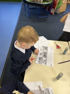 Today we read the story ‘The Gingerbread Man’ and then we completed a sequencing activity by cutting and sticking the main events in the correct order. Good job everyone!