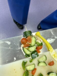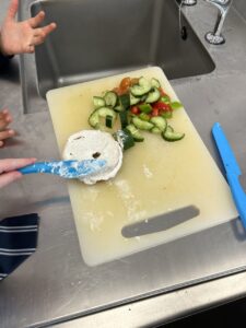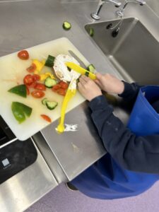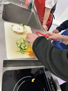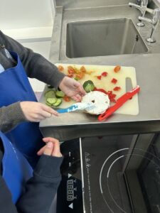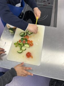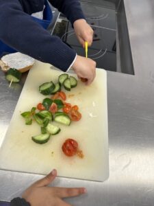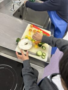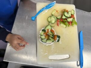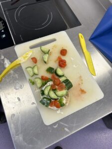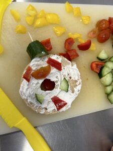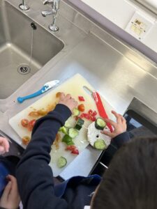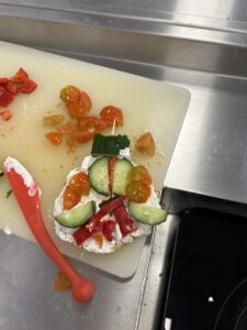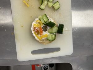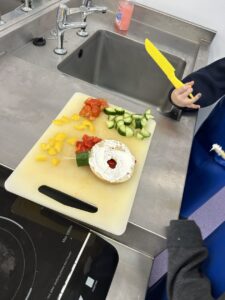 Last week we were learning about symmetry and so we decided to make symmetrical patterns on our Christmas bauble bagels on Monday! We were also discussing cutting the vegetables and bagels in half. Great work boys and girls!