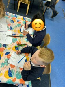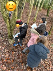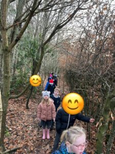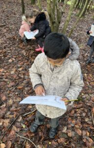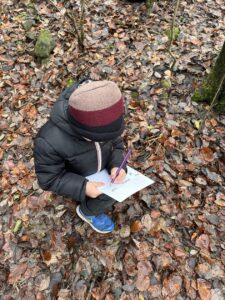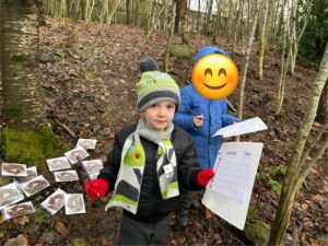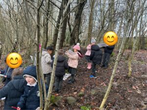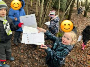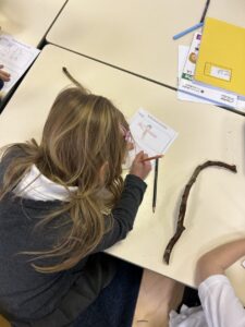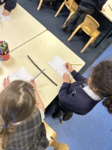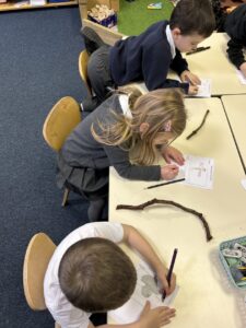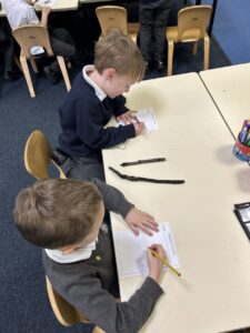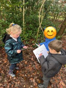 Today we read the story ‘Stick Man’ and went to the forest to find our own stick character for story writing. We took our character on an adventure and then went back to the classroom to plan our story.
