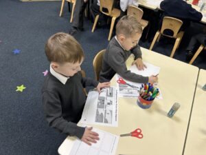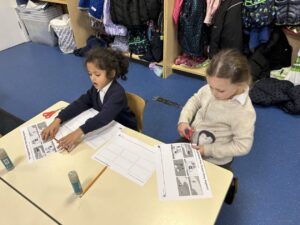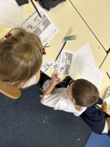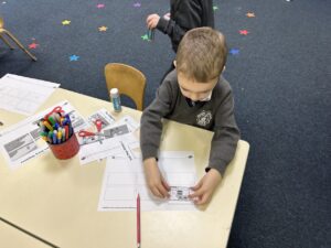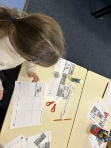 Today we read the story ‘The Gingerbread Man’ and then we completed a sequencing activity by cutting and sticking the main events in the correct order. Good job everyone!