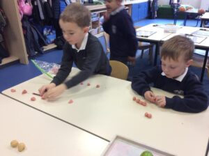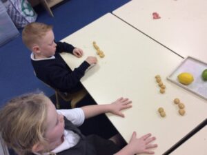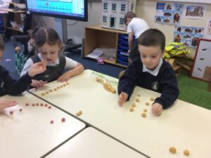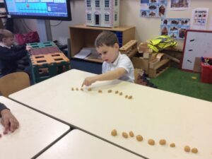 A few weeks ago we were learning to write a list using numbers. We had to write a list of everything we needed for our teddy’s bear’s picnic. Unfortunately we had to have it indoors due to the rain but we still had lots of fun in the gym hall eating our snacks, singing songs and playing games. Our favourite game was ‘Teddy Teddy Bear’ instead of ‘Duck Duck Goose’.