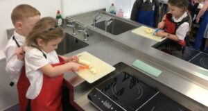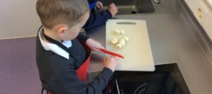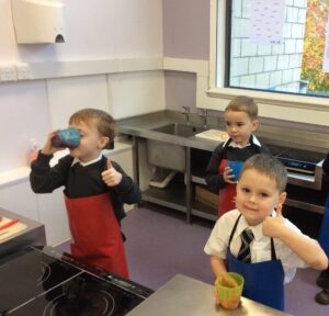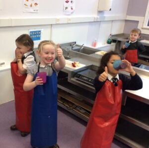Today we started our next block of Mearns Masters cooking in the kitchen. We made smoothies using various fruits and water. We learned the claw cut and the bridge cut and successfully used these techniques to help us to prepare the fruit for our smoothies. Some people loved them but others weren’t so keen… as you might be able to tell from the pictures!
