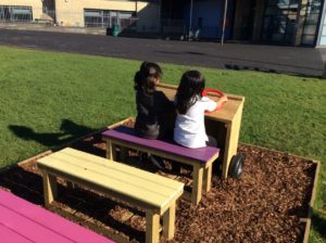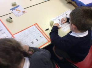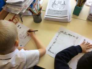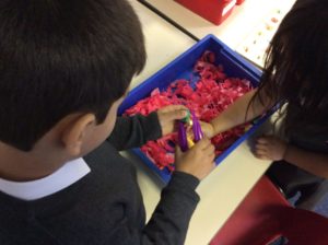 We have been learning satipn in class. Today we learned all about the sound ‘n’.  We learned that nest begins with n so we decided to go outside and build some nests for the birds.