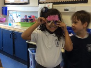 We are investigating Autumn. We are going to be looking at the different colours the leaves turn into and why this happens after the holiday. Mrs Provan loved walking in and kicking Autumn leaves when she was a little girl so we thought we would try it out. We then created some leaf pictures. We had lots of fun,