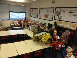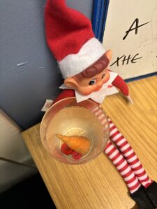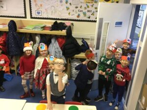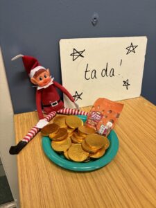 Our class elf Twinkle arrived late to our class today! He had decorated the class room over the weekend and left us an advent calendar!! He left primary 2.5 a letter explaining that if we can follow the school values until the end of December he will drop off some presents for us and he will make Miss Kelly host a movie day in school! He doesn’t believe we will be able to follow his rules but I think we can prove him wrong …