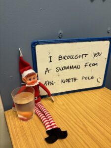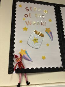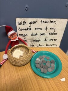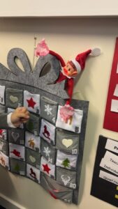 Our class elf Twinkle arrived late to our class today! He had decorated the class room over the weekend and left us an advent calendar!! He left primary 2.5 a letter explaining that if we can follow the school values until the end of December he will drop off some presents for us and he will make Miss Kelly host a movie day in school! He doesn’t believe we will be able to follow his rules but I think we can prove him wrong …
