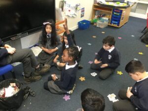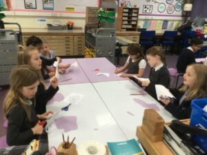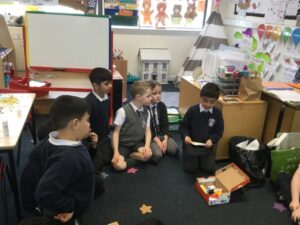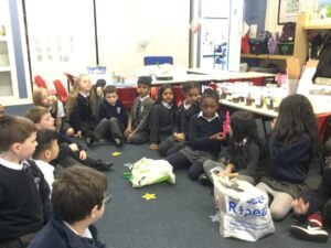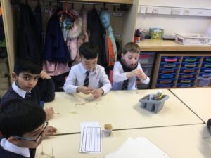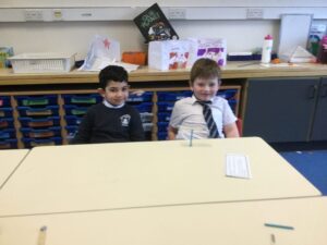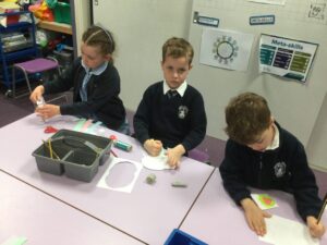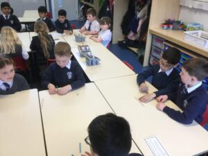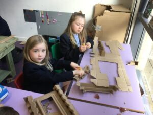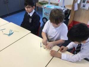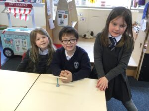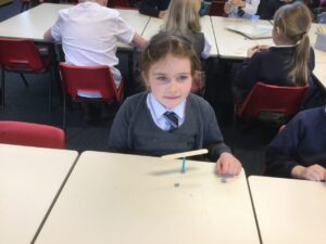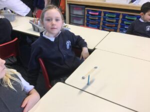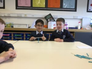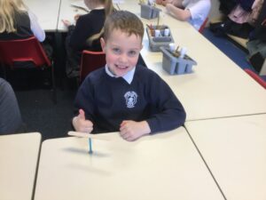 The Young STEM leaders from primary 7 came to visit us. They planned some super STEM tasks and experiments for us to try out. We made a house using playing cards (Which was challenging!)ย , we had to balance lollipop sticks and straws using blue tac, we made towers and models using cocktail sticks and blue tac, and we had to try using different materials to make a marble move.