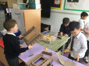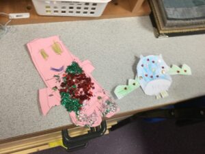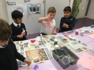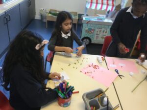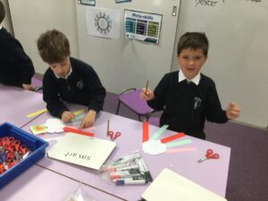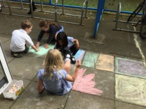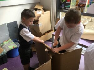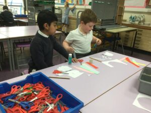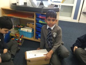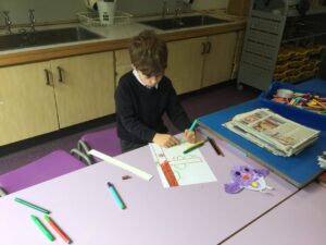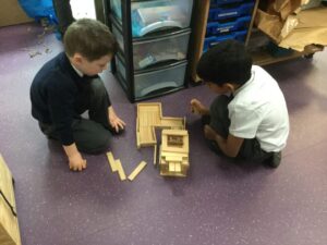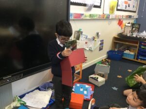 Today we enjoyed making lots of arts and crafts. We used tools to cut cardboard. Jacob made a car park using cardboard packaging and Grayson made a hammer. Some of us used our fine motor skills to make different designs by curling strips of paper. ย Some enjoyed using chalk to make a hopscotch outside. Lots of us enjoying playing with iPads and kapla.