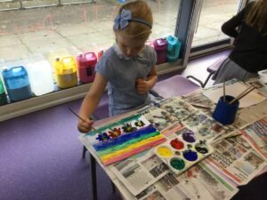 We enjoyed drawing, painting, using tools to cut cardboard, using the iPads, building towers using Kapla and making rainbows all about ourselves. We are a very creative bunch so we enjoyed the opportunity to try out different resources and make our own creations!