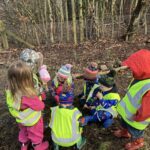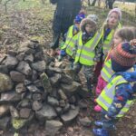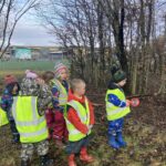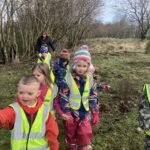 Today we put on our wellies and went off to explore the woods and the far end of the play ground. We did all of our Forest Kindergarten checks and then off we went.