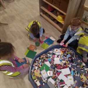 In the construction area the children have been busy building houses of all shapes and sizes. We have been discussing the different types of homes we live in and the differences between them. During nurture time we used Google maps to find our house and see where it is in relation to the nursery.