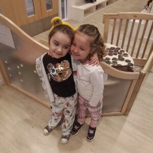 For Children in Need we wore our pyjamas to nursery to raise money for the great cause. The P7s set up activities in the gym hall for all of us to participate in which was great fun.