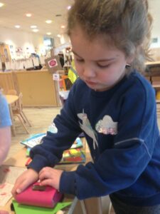 In the construction area the children have been busy building houses of all shapes and sizes. We have been discussing the different types of homes we live in and the differences between them. During nurture time we used Google maps to find our house and see where it is in relation to the nursery.