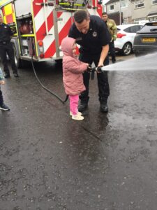 We were really lucky to have a visit from the Fire Service this month. The children got the chance to sit inside the Fire Engine and have a go using the hose. Thank you to the Firemen for their kindness and patience with the children!