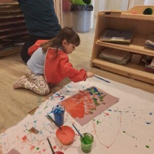 The children have been inspired by the artist Jackson Pollock and have been creating their own artwork using a splatter technique.