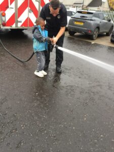 We were really lucky to have a visit from the Fire Service this month. The children got the chance to sit inside the Fire Engine and have a go using the hose. Thank you to the Firemen for their kindness and patience with the children!