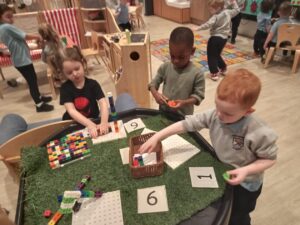We have been busy exploring numbers within 10 by developing our numeral recognition and counting amounts.