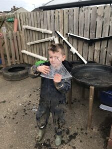 We have had a great time exploring the nursery garden. The weather has been so cold the water froze and made big pieces of ice. The children investigated the ice.