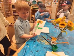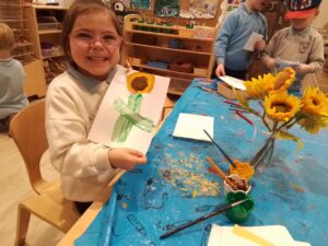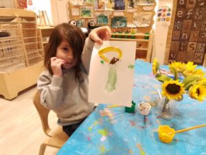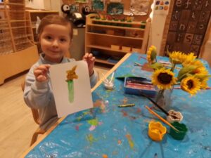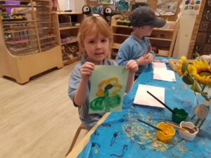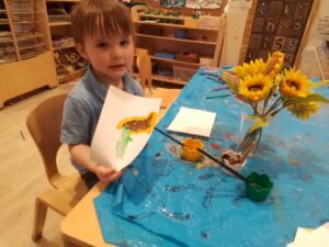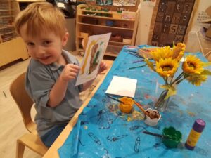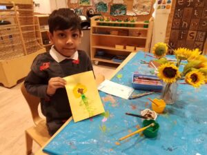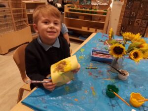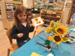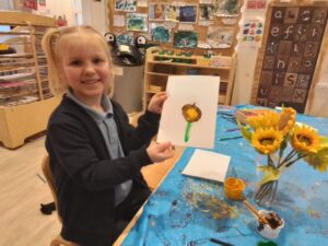 In the Art Area, we continue to explore the work of artist Vincent Van Gough. We have been observing his famous sunflower art work and have created our own sunflowers using paint, collage and still life drawing🌻.  As every sunflower is different and unique we have discussed that we are all different and unique too. Well done everyone your sunflowers 🌻 are just wonderful 💛