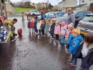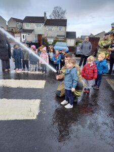 We had a visit from our local Fire and Rescue Service. We got to look at the fire engine and had a go of using the hose which was so much fun.
