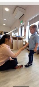 We had a fantastic visit from Yijie Xu who taught us a  little bit of Mandarin.  All the children introduced themselves  by saying   “Ni Hao” (hello), my name is ……”
