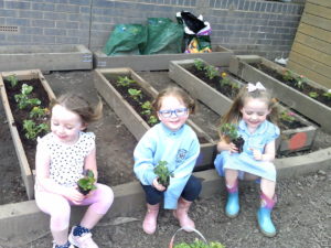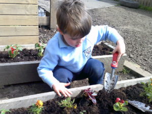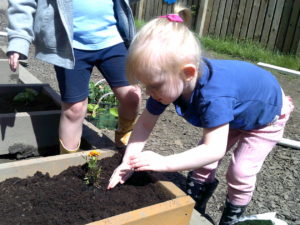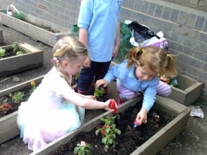 In the garden each group has been given their own planter, the children have chosen which bedding plants to plant and then have taken the responsibility to look after them each day. They have also been given the opportunity to plant their own sunflower seeds before taking them home.