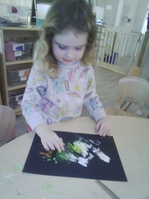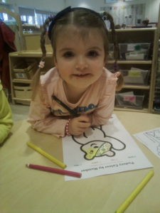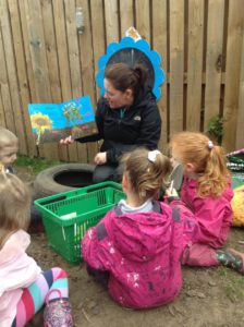 A child in the orange group showed a keen interest in bugs and insects while outdoors, this child then found a big green Caterpillar while outside which sparked conversation and interest throughout the nursery around caterpillars and how they transform into butterflies.