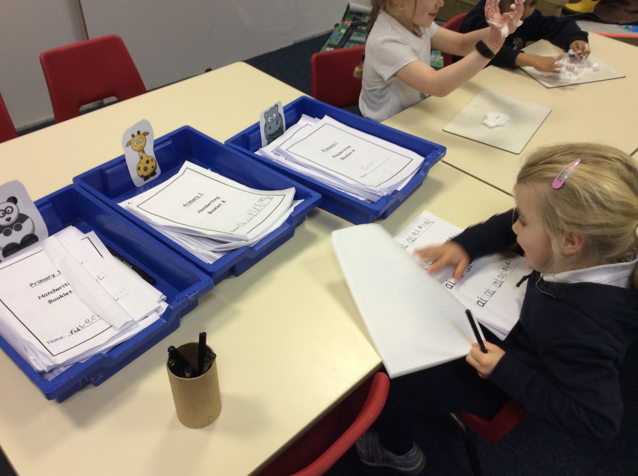 We are learning about non-fiction books, writing tricky words and phonics words in shaving foam, independently practising writing our sounds and having fun with super heroes!