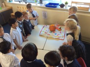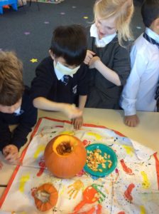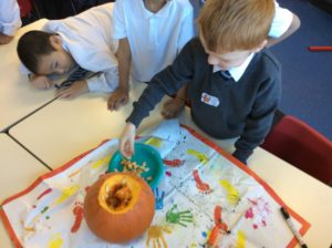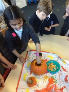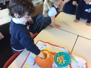 Well done to all the boys and girls of Primary 2.6 who did an excellent job of organising and taking part in their very own pumpkin hunt! The children loved helping the other Primary 2 pupils to complete the pumpkin hunt and had great fun making skeletons, creating pumpkin art and pumpkin bowling!