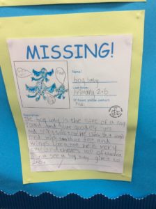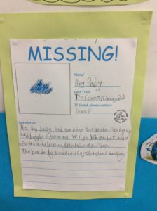 P2.6 read the bog baby and found out that bog babies had gone missing! We made missing posters for our bog babies! We went on a bog baby hunt and found some bog babies in the forest!