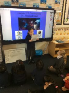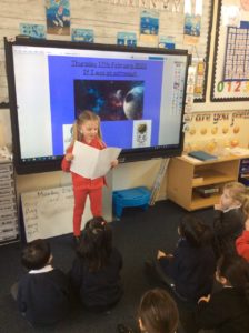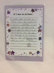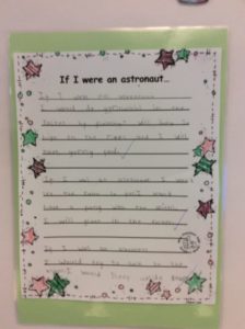 The boys and girls in Primary 2.6 watched a real life astronaut read them the book โIf I was an astronautโ and then they had a chance to write about if they were an astronaut! From visiting Saturnโs rings to testing the temperature of the moon ๐ย the children have really used their imaginations to produce this writing!