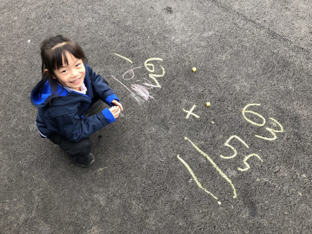 We took our numeracy outside today in P3.10 to celebrate Maths Week. Using dice and chalk, we used our column addition and subtraction skills to create problems for other children to solve.