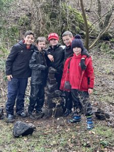 We went to the forest with primary 3 and we taught them to build cairns. We had to teach them what a cairn is, what materials to use and how to make it stable. We had to communicate well. It was great to work with them.
