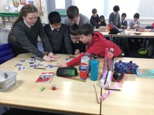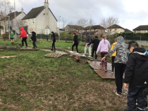 We spent two full days at St. Ninain’s High School as part of a Cluster event. These days were exciting and very fun. We had the opportunity to take part in; Design and Technology, Art and Design, Sceince and Business.  In Design and Technology we made a wooden spinning top by using a laser cutter, coping saw, a drill and a hammer. In Science were able to use a Bunsen burner and were able to burn magnesium ribbons which created a very bright white light. In Art and Design we did some leaf drawings and drawing of animals using stencils.  In Business we created a new ride in Disneyland and created advertising for it. We were very tired after these visits!